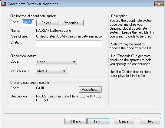 Code utilisé par le jeu d’outils AutoCAD Map 3D pour identifier le système de coordonnées du dessin.