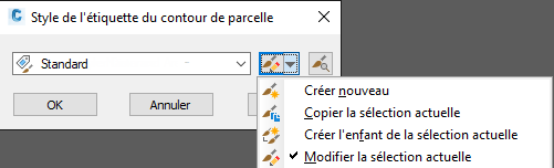 L'éditeur du style d'étiquette est accessible via l'option Modifier la sélection actuelle.