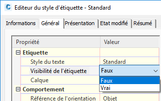 Figure 3 : désactivation de la visibilité des étiquettes pour un objet