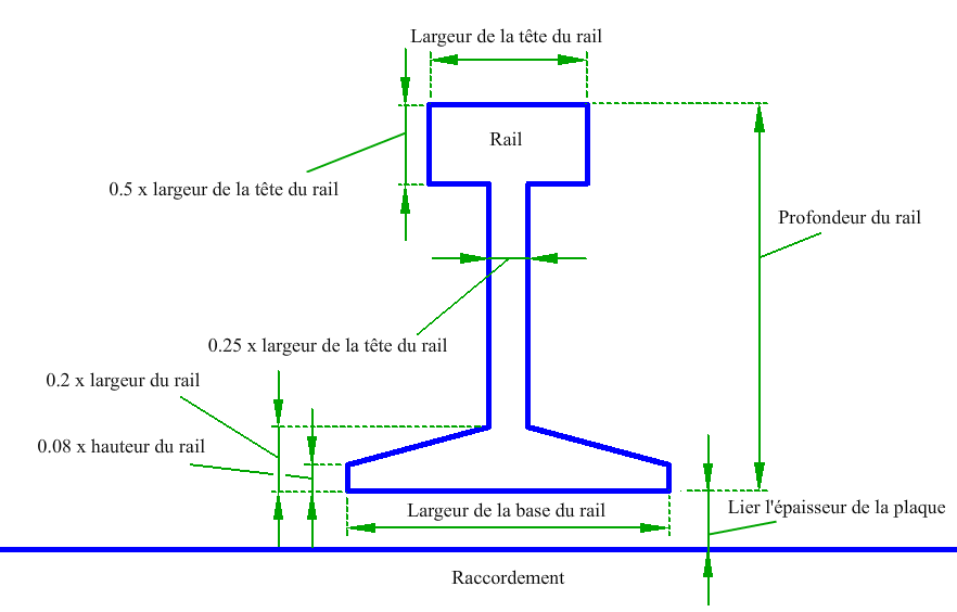 | Largeur de la tête du rail | Largeur de la tête du rail. | Numérique, non-négatif |