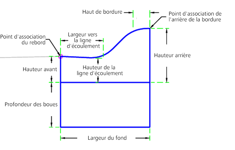 En mode d'édition, cet élément de profil type affiche le composant bordure et caniveau en fonction des paramètres d'entrée spécifiés.