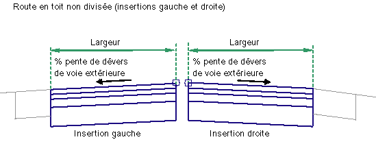 Spécifie l'emplacement du point d'insertion de la voie au niveau du dévers ou sur le bord de la chaussée |