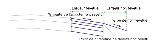 Indique si l'accotement est incliné à partir du dévers ou vers le dévers.