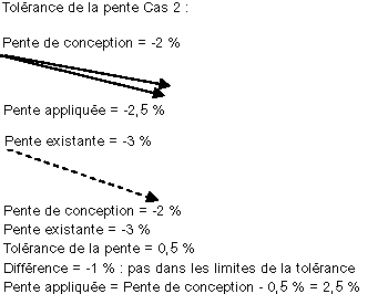La valeur autorisée par les pentes de recouvrement diffèrent de leur valeur de conception. La tolérance de la pente n'est pas utilisée si le paramètre pente de recouvrement est défini sur M (voir la section Comportement ci-dessous pour des explications détaillées). |