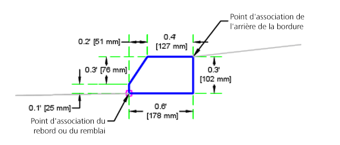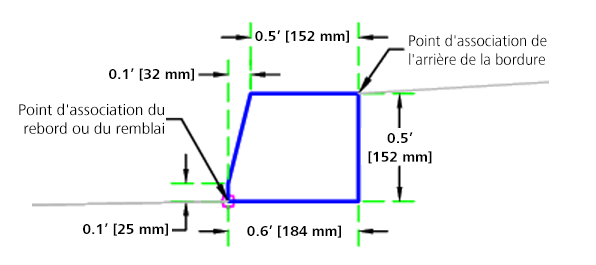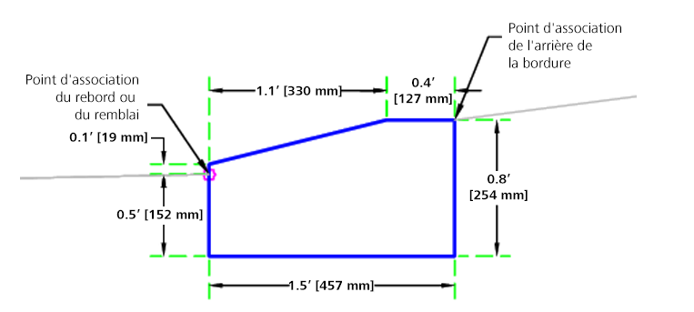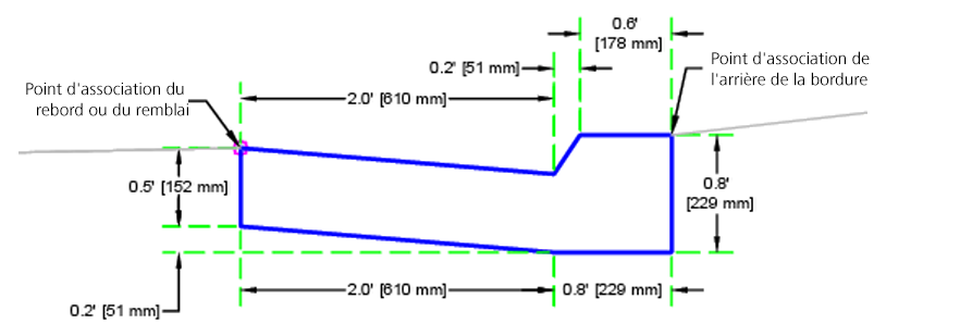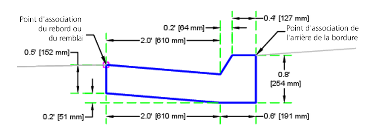 L'élément de profil type BorduresCaltrans insère des liens pour créer des bordures et caniveaux basés sur les plans standard RSP A87A de Caltrans.