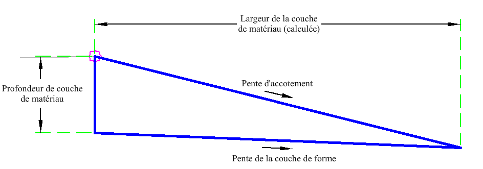 L'élément de profil type ShoulderIntersectRight crée un accotement prolongé jusqu'à un point d'entrée en terre selon la pente de l'accotement et la couche de matériau. Il ne fonctionne que sur la droite.