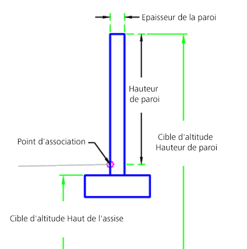 | Hauteur de paroi | Hauteur du mur au-dessus du point d'association | Numérique, positive |