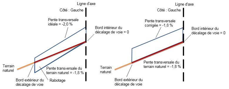 La valeur de la pente transversale corrigée est toujours égale à celle de la pente du terrain naturel.