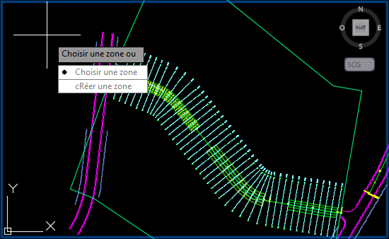 Dans la palette Paramètres de réhabilitation, vous pouvez modifier les paramètres des abscisses curvilignes sélectionnées. Suite aux modifications effectuées dans la palette Paramètres de réhabilitation, la zone du projet 3D de réhabilitation sélectionnée et la vue de profil en travers sont mises à jour lorsque vous cliquez sur Appliquer.