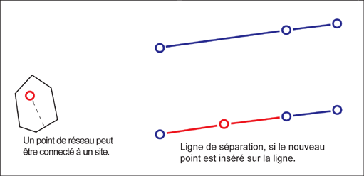 Si vous placez le point de réseau sur un objet ligne tel qu'une canalisation, l'application vous demande de créer une séparation avec attribut unique ou avec différents attributs. Pour plus d'informations, voir Fractionnement des lignes.