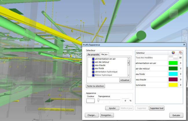Pour appliquer un code de couleur au modèle selon les jeux de recherche et de sélection