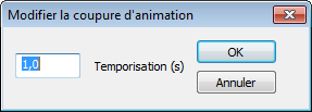 Dans la boîte de dialogue Modifier la coupure d'animation, indiquez la durée souhaitée pour la pause en secondes dans la zone de texte Temporisation.