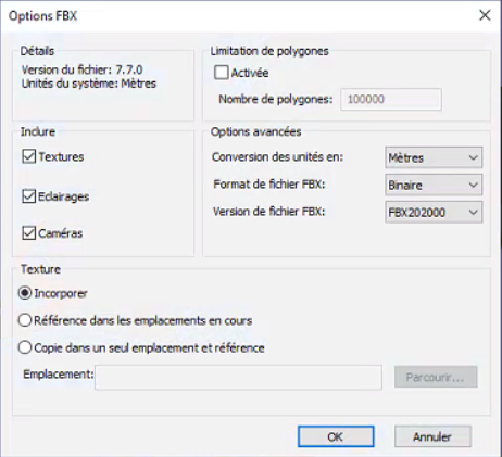 Dans ce cas, les objets de géométrie essentiels sont privilégiés par rapport aux détails. Si le fichier exporté est trop volumineux, essayez d'activer cette option et de réduire le nombre de polygones. Cliquez sur l'onglet Début, développez le groupe de fonctions Projet et cliquez sur Statistiques de la scène