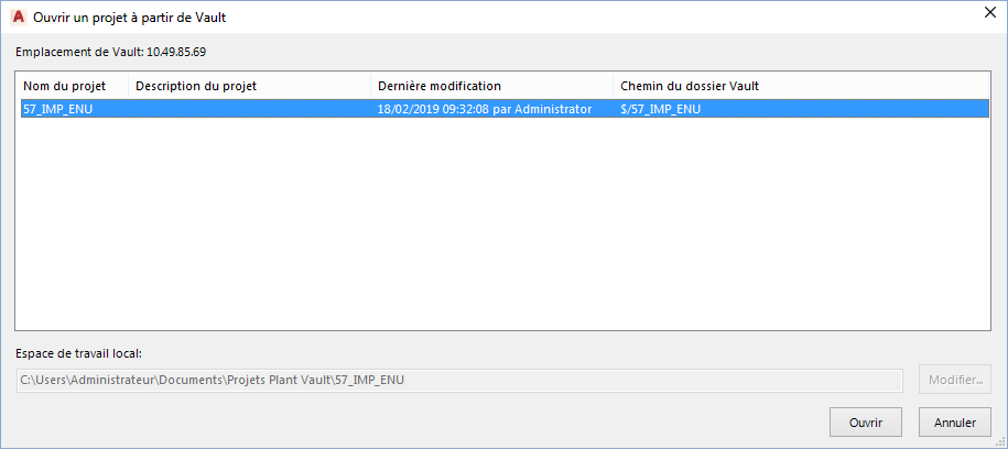 Une fois que vous êtes connecté à Vault, vous pouvez ouvrir un projet Plant à partir de cet emplacement.