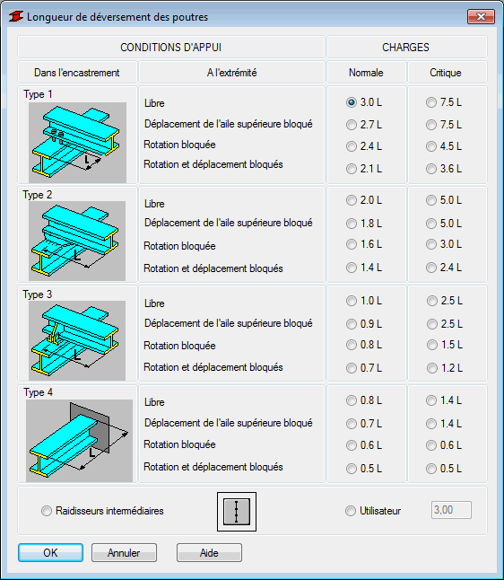 L’option sert à définir les distances entre les sections transversales protégées contre la torsion, c’est-à-dire la longueur de déversement pour une console. Pour accéder à l’option :