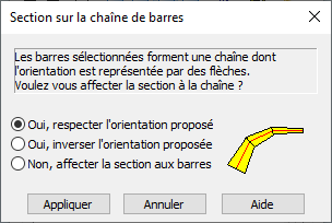 Dans cette boîte de dialogue, vous pouvez sélectionner le mode d'affectation de la section aux barres. La partie supérieure de la boîte de dialogue affiche une question portant sur le mode d'affectation de la section à la chaîne de barres sélectionnée. Il existe trois méthodes pour appliquer la section :