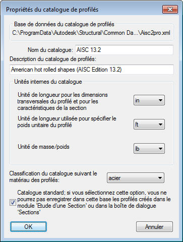 Définissez les propriétés suivantes de la base de données de sections dans cette boîte de dialogue.