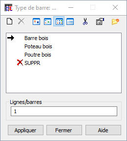 Ce type de barre ne peut être modifié. La procédure d'affectation est identique à celle de l'attribution d'un type de barre à la structure.
