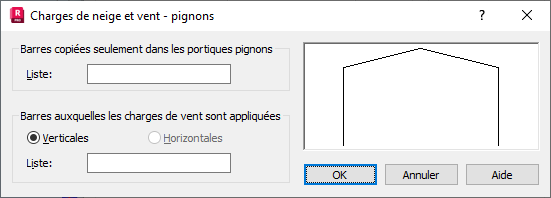 - Dans le champ Barres auxquelles les charges de vent sont appliquées, indiquez les barres appartenant aux portiques pignons (horizontales ou verticales) qui doivent être chargées avec le vent le long de l'axe Y.