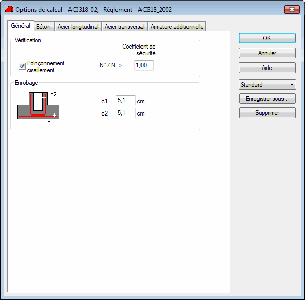 Après la sélection de l’onglet Général, la boîte de dialogue Options de calcul pour les semelles s'affiche comme illustré ci-dessous :