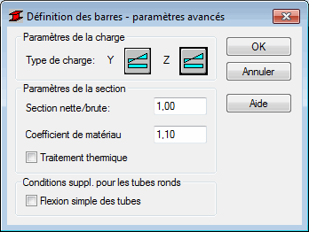 Cette option sert à définir les paramètres réglementaires avancés du type de barre acier. Pour accéder aux paramètres, cliquez sur le bouton Plus situé dans la boîte de dialogue Définition des barres - paramètres.