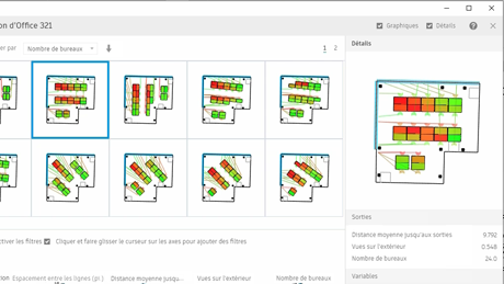 Après avoir créé une étude avec l'outil de Conception générative dans Revit, explorez les résultats pour trouver celle qui résout le mieux les défis de conception ou utilisez un résultat comme base pour une nouvelle étude.