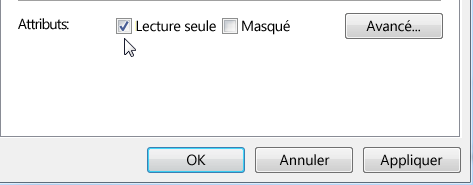 Pour verrouiller une bibliothèque de matériaux, cliquez avec le bouton droit sur le fichier dans l'Explorateur Windows, cliquez sur Propriétés, puis sélectionnez l'attribut Lecture seule.