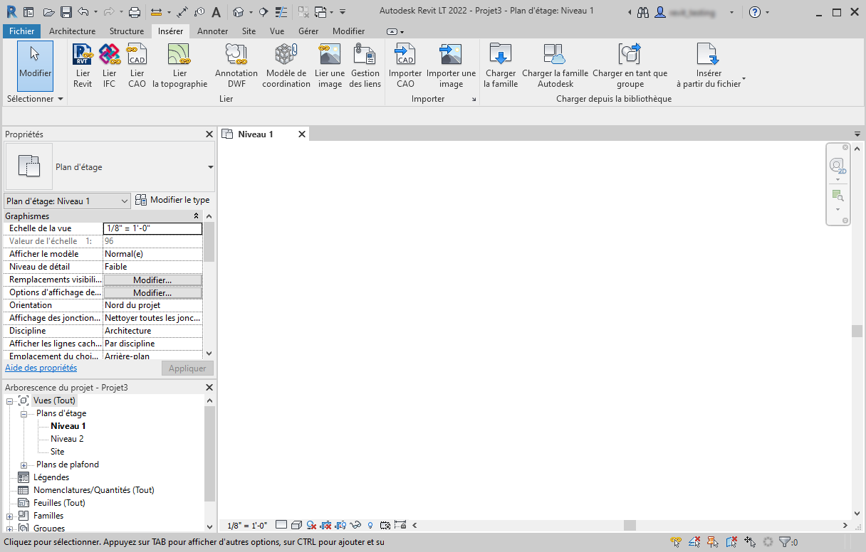 La zone de dessin affiche les vues (ainsi que les feuilles et les nomenclatures) du modèle actif. Chaque fois que vous ouvrez une vue dans un modèle, la vue s'affiche dans la zone de dessin.