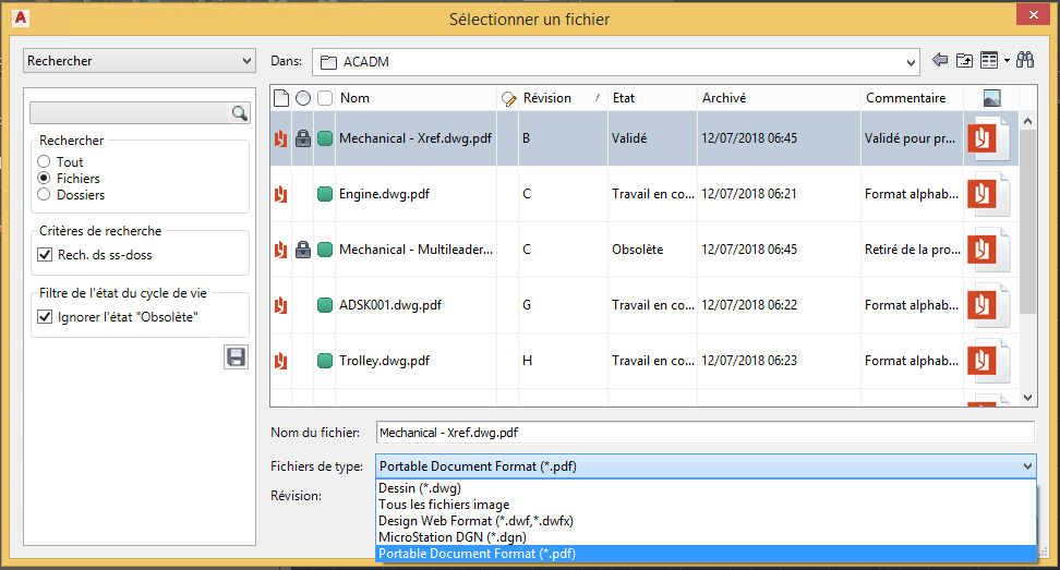 Vault prend désormais en charge la gestion des dessins AutoCAD contenant des pièces attachées au format PDF.