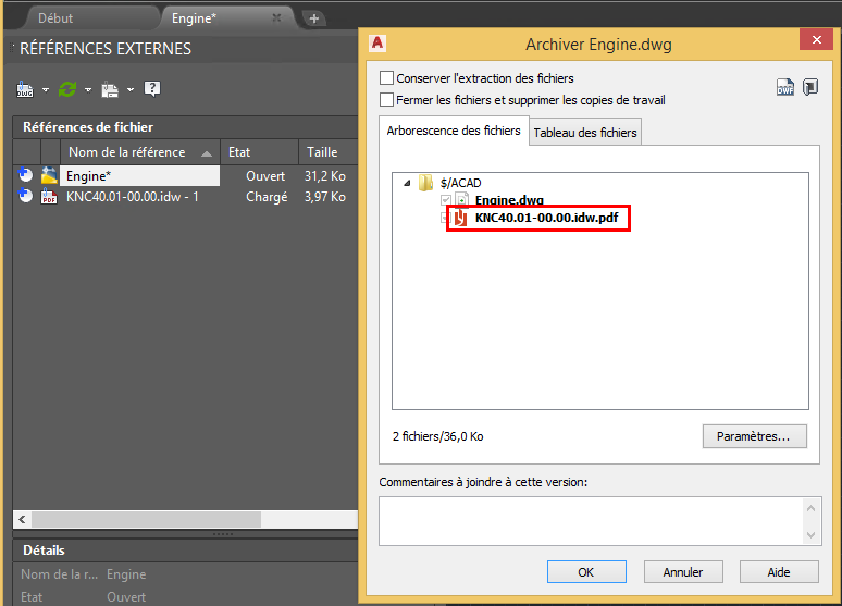 Dans AutoCAD, il est possible d'attacher un fichier PDF au dessin associé en tant que calque sous-jacent. Toutefois, jusqu'à présent, il n'était pas possible d'attacher un fichier PDF lors de l'archivage dans Vault.