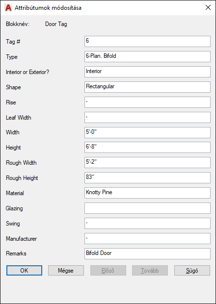 A kijelölt blokk nevét jelzi. Minden attribútum, amelyet a blokk tartalmaz, megjelenítésre kerül ezen a párbeszédpanelen.