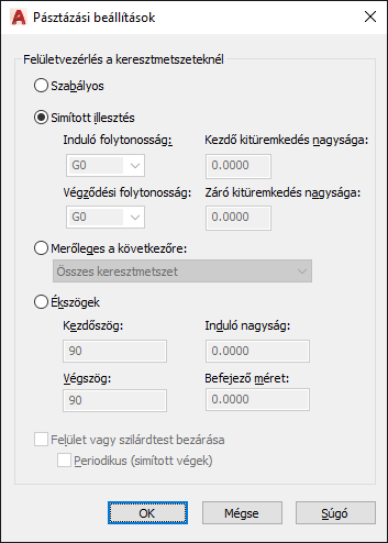 Olyan simított, zárt görbét hoz létre, amelynek vonala nem törik meg a görbe alakjának megváltoztatásakor. Ez a lehetőség csak akkor áll rendelkezésre, ha a pásztázás Szabályos vagy Simított illesztés, és a Felület vagy szilárdtest lezárása opciót választotta.