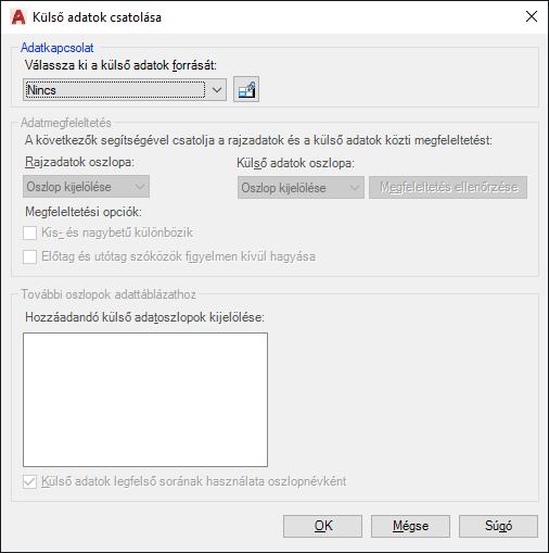 Az oszlopok nevét a munkalapban való előfordulásuk sorrendjében jeleníti meg. A kijelölt oszlopok az adategyeztetés során a rajzi adatokhoz csatolódnak.