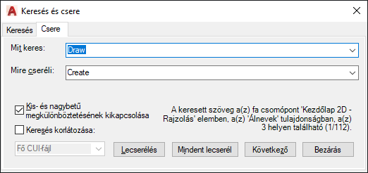 Egy üzenet jelenik meg, amely leírja a parancs találati helyét: a pontos helyét a Testreszabási beállításai vagy a Tulajdonságok ablaktáblán és a példányainak számát.
