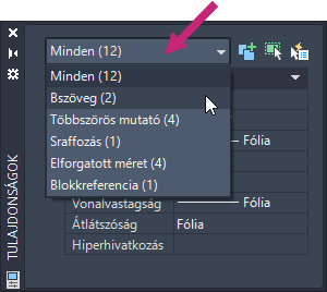 | ANNOALLVISIBLE | Elrejti vagy megjeleníti az aktuális feliratozásléptéket nem támogató feliratozási objektumokat. | 1 | Rajz |