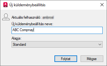 Az Új küldeménybeállítás párbeszédpanelen, az Új küldeménybeállítás neve szövegmezőben cserélje le az alapértelmezett nevet a következőre: ABC Company. Kattintson a Tovább gombra.