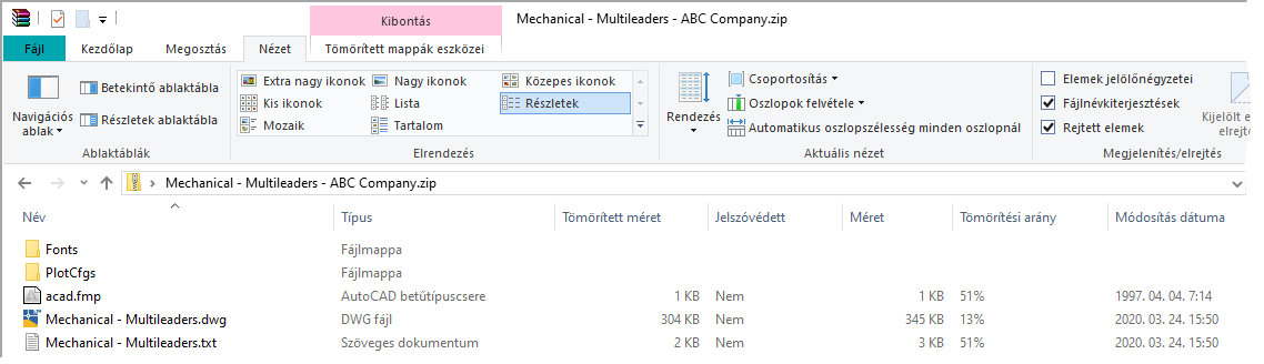 A ZIP-fájl tartalma megjelenik az ablakban, és láthatóvá válik a fájlok struktúrája.