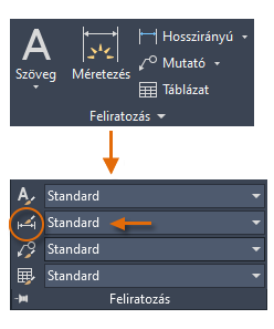 Az aktuális méretstílus neve (ami ebben az esetben Hitchhiker (Stoppos)) a Feliratozás panel legördülő listájában is megjelenik.