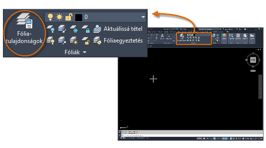 Rajz elrendezésének megtekintéséhez nyissa meg a fóliatulajdonság-kezelőt a FÓLIA paranccsal. Beírhatja a parancsablakba a FÓLIA vagy a FÓ parancsot, illetve a szalagon a Fóliatulajdonságok eszközre kattinthat.