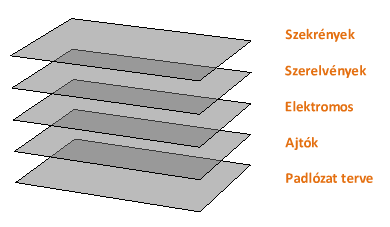 Az ilyen szintű vezérlést úgy érheti el, ha a rajzon szereplő objektumokat funkciójuk vagy céljuk szerint a megfelelő fóliákra rendezi. A fóliákra gondoljon úgy, mint áttetsző műanyaglapokra: