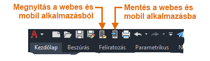 Ha úgy gondolja, hogy szüksége lesz rajzai távoli elérésére, próbálja ki a Mentés a webes és mobil alkalmazásba és Megnyitás a webes és mobil alkalmazásból parancsokat.
