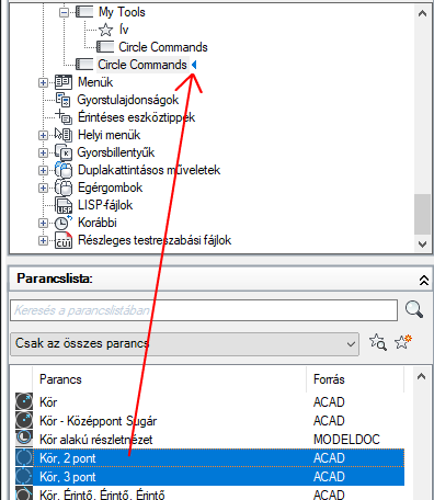 A Parancslista területről húzza a hozzáadni kívánt parancsot a <fájlnév> testreszabási beállításai területen lévő eszköztár-leporellóhoz.