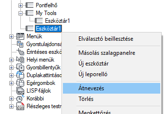 Kattintson a jobb gombbal az Eszköztár1 nevű eszköztárra, ne a leporellóra. Kattintson az Átnevezés gombra, és adjon meg egy új nevet.