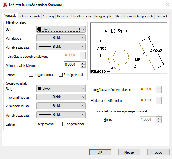 Az alapértelmezett méretstílus neve Standard (angolszász) vagy ISO-25 (metrikus). A program minden mérethez hozzárendeli ezt a stílust, amíg meg nem ad egy másik, aktuális méretstílust.