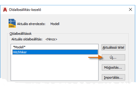 Az Oldalbeállítás-kezelő megnyitásához kattintson a jobb gombbal a Modell lapra vagy egy elrendezési lapra, majd válassza az Oldalbeállítás-kezelő lehetőséget. A parancs a következő: OLDALBEÁLL.