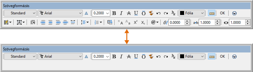 A Szövegformázás eszköztár megjelenését szabályozza. Ez a beállítás állítja be az MTEXTTOOLBAR rendszerváltozót. (Egysoros szöveg esetén nem érhető el.)