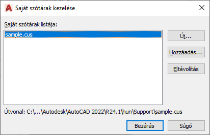 Lehetővé teszi, hogy fájllistáról meglévő saját szótárat vegyen fel.