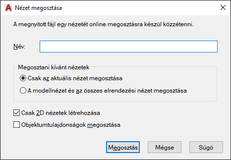 Elnevezi a megosztott nézetet. A név maximálisan 255 karakter hosszúságú lehet, és betűket, számokat, szóközöket és bármilyen speciális karaktert tartalmazhat, aamelyet az operációs rendszer és a program nem használ más célokra.