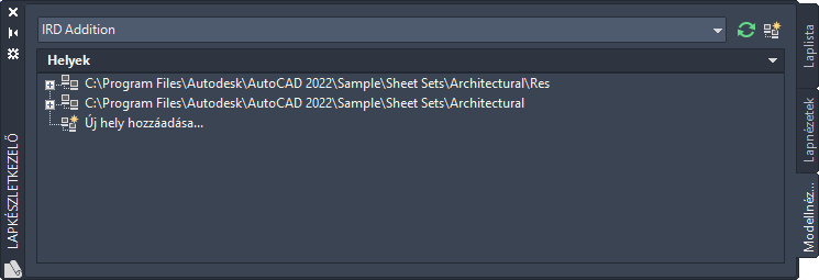 Az aktuális lapkészlethez elérhető rajzfájlok kezelésére hozzáadhat és eltávolíthat mappahelyeket.