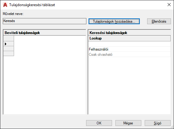 Megjeleníti a társított keresési művelet nevét, amely a Tulajdonság palettán módosítható.